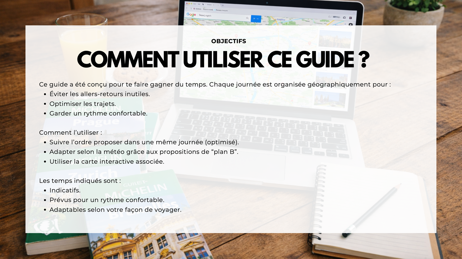✔ Un format visuel simple et structuré, à consulter avant et pendant le séjour.