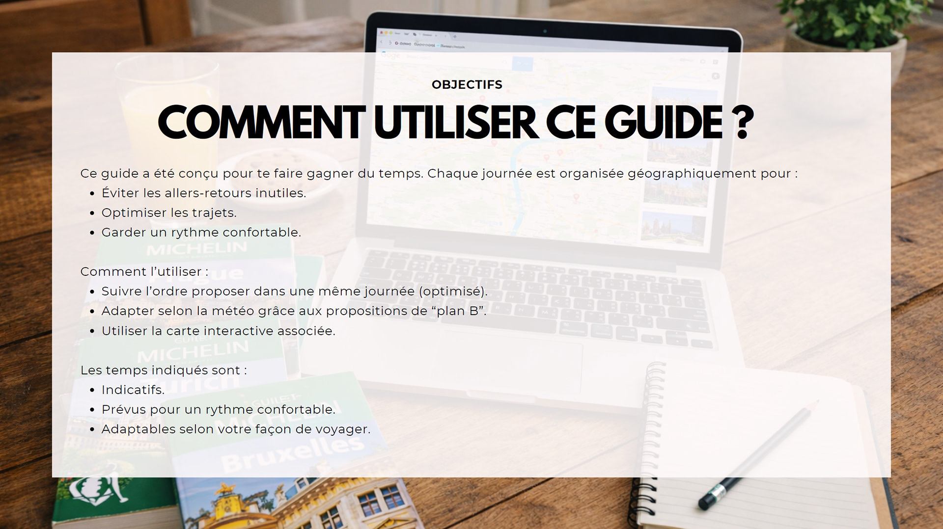 ✔ Un format visuel simple et structuré, à consulter avant et pendant le séjour.